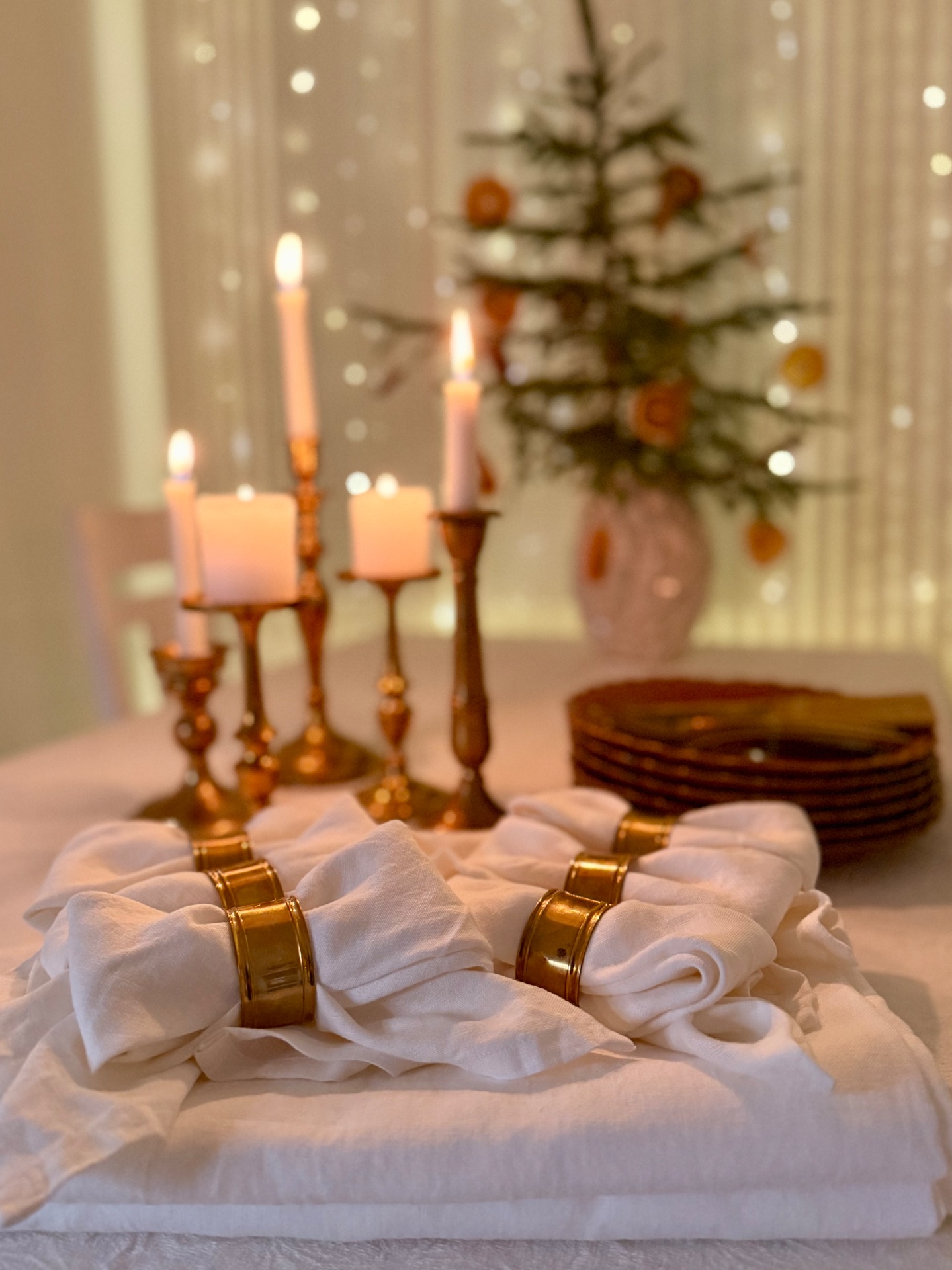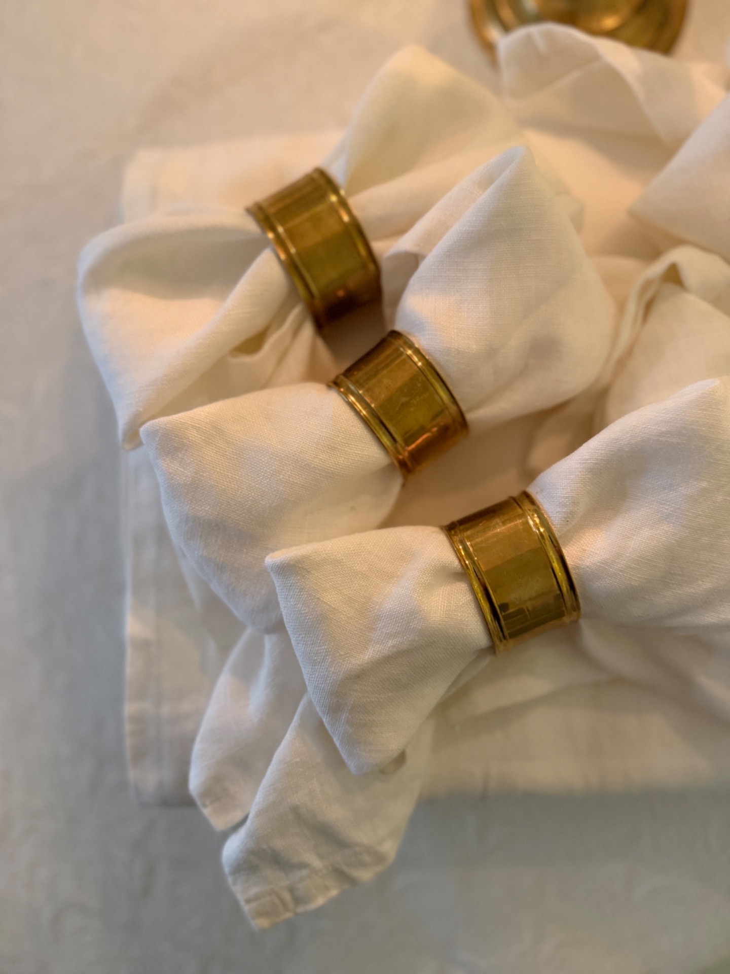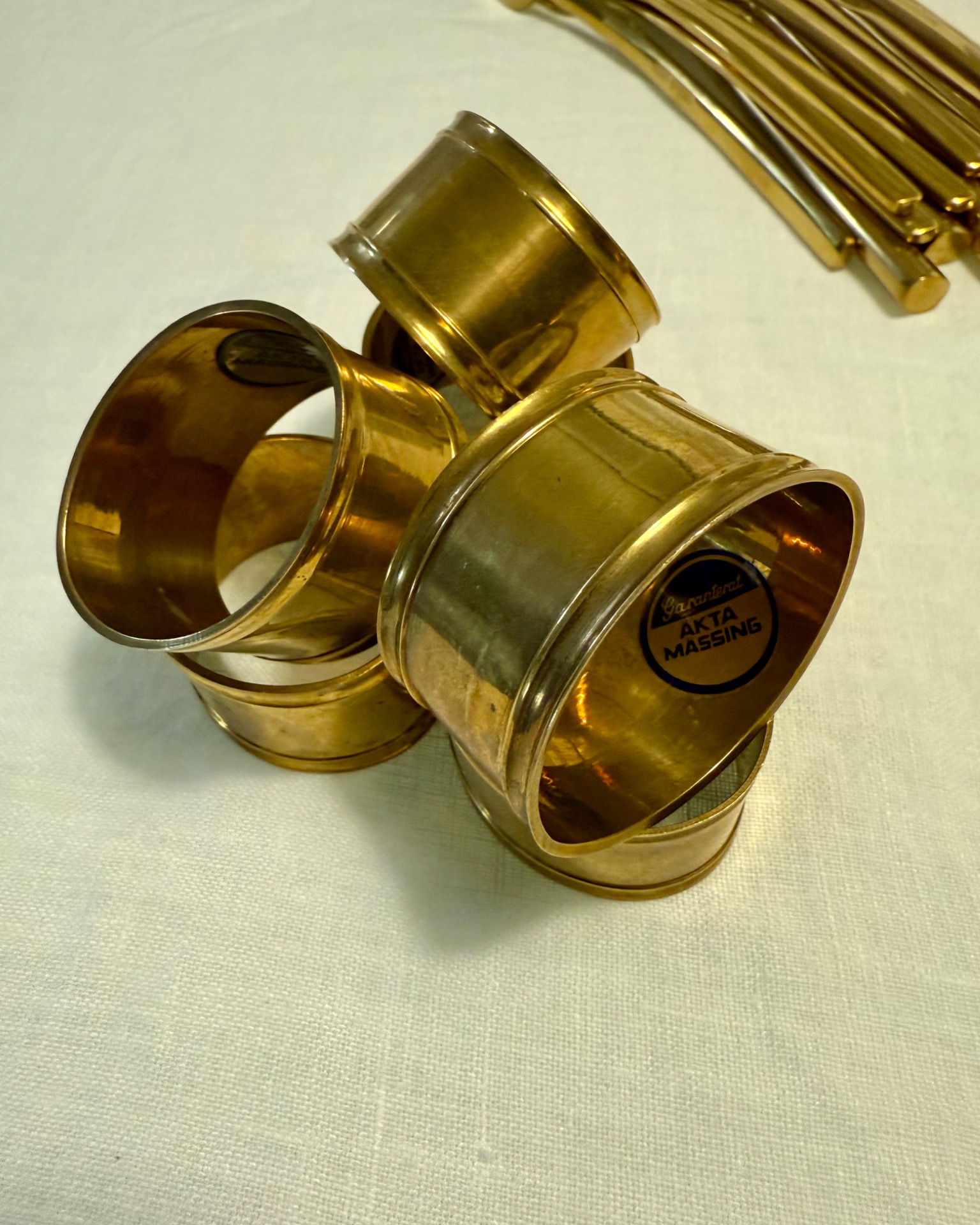 Vanhat messinkiset servettirenkaat.